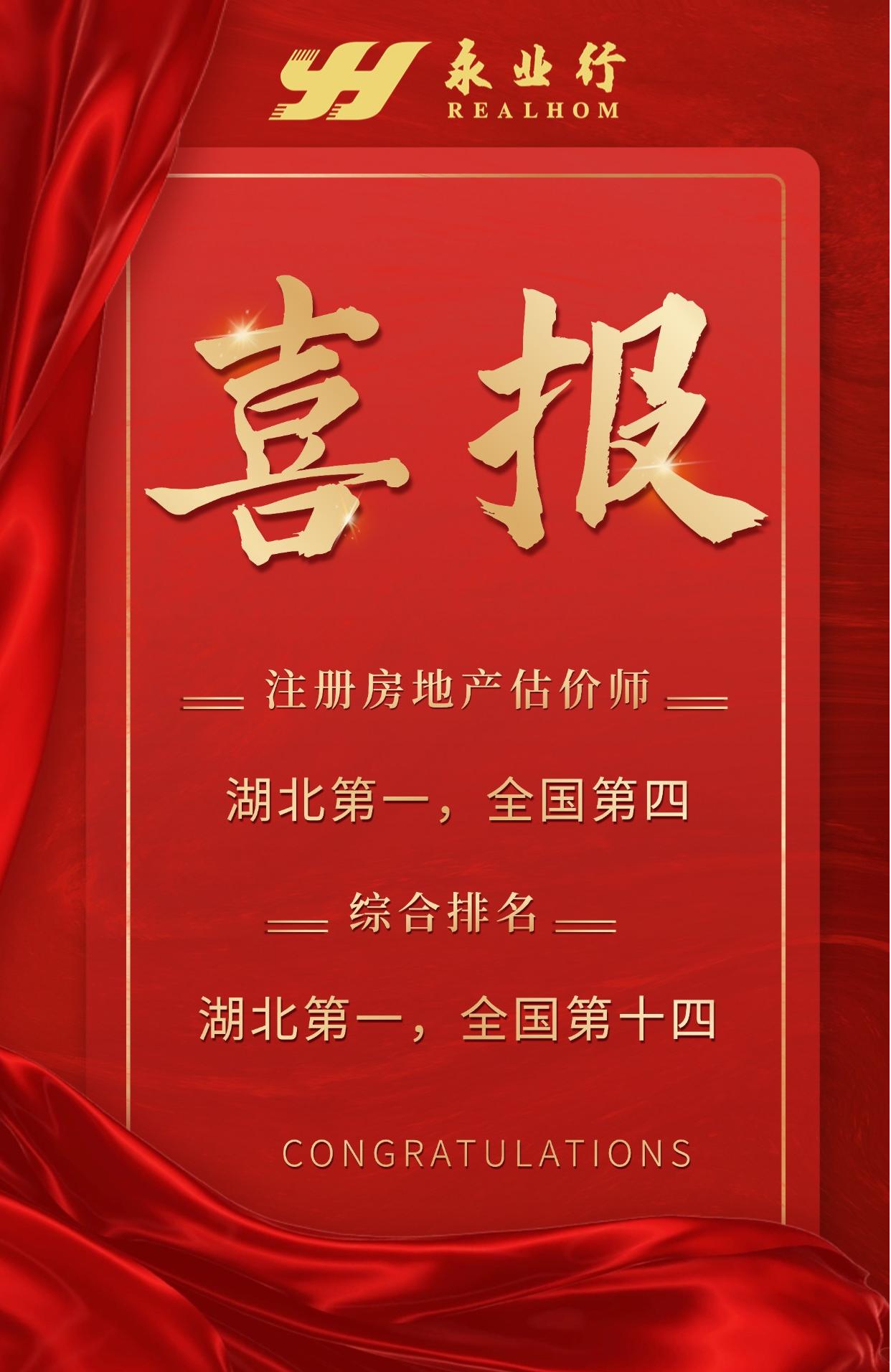 2025年6月17日,中国房地产估价师与房地产经纪人学会发布公告(中房学〔2025〕19号),永业行在2024年度全国1132家一级房地产估价机构中综合排名湖北第一,全国第十四,估价业务收入排名稳步提升。
